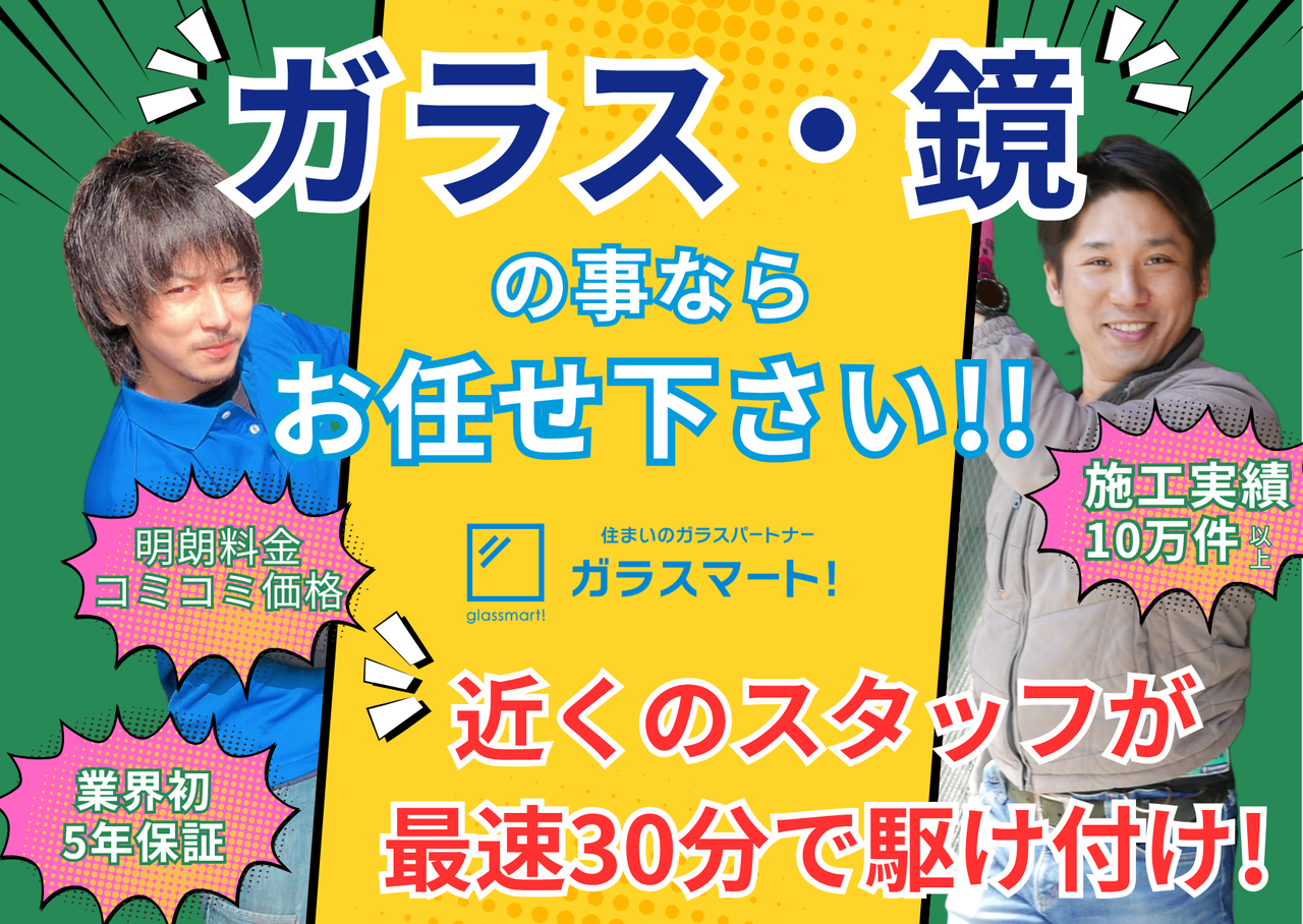 住まいのガラスパートナー「ガラスマート!」は、地域に密着したガラスの出張修理・交換専門店です。